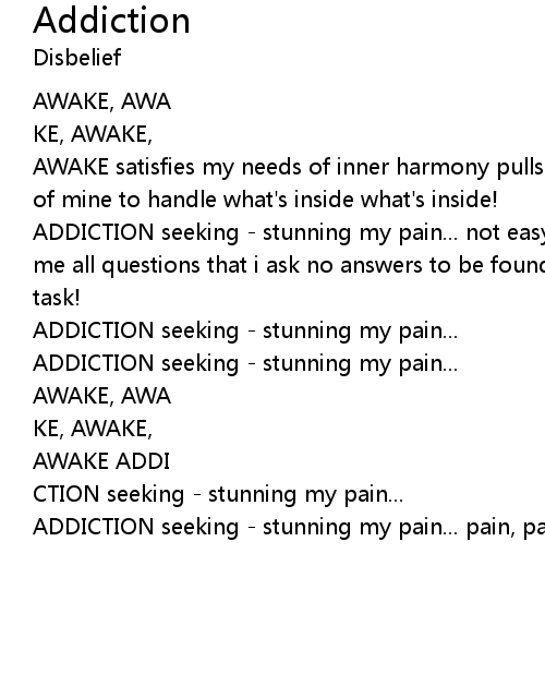 ADDICTION seeking - stunning my pain... not easy to compare don't know why it's me all questions that i ask no answers to be found existence is our task, our task! |