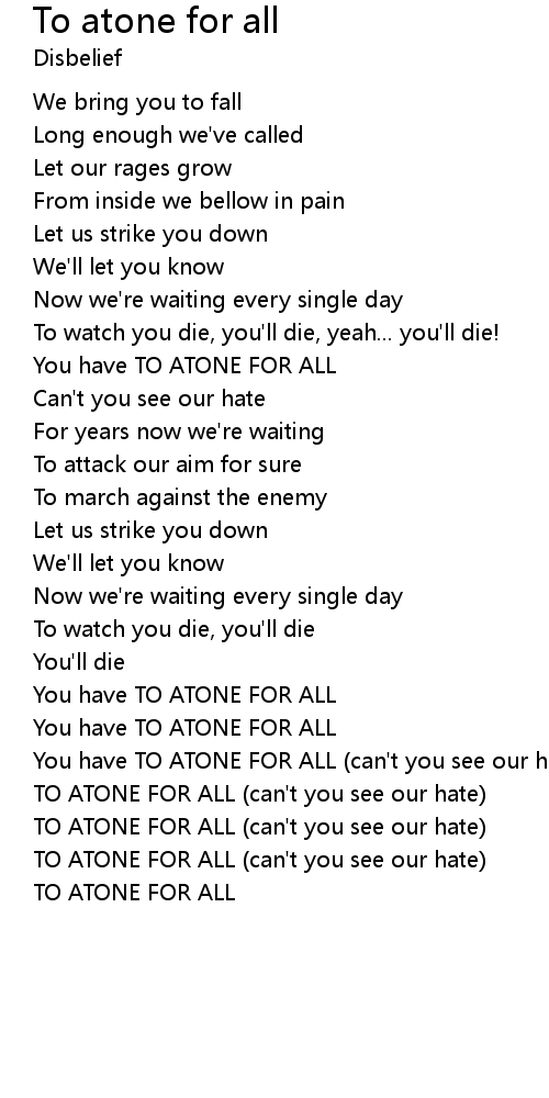 | You have TO ATONE FOR ALL (can't you see our hate) | |