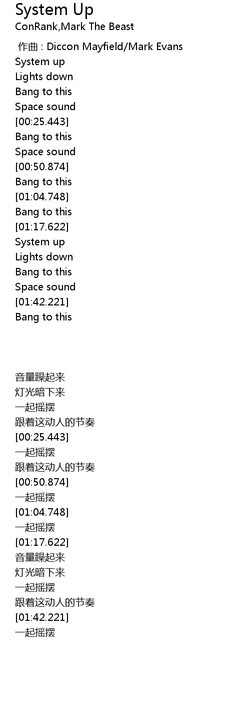 | [00:00.000] | 作曲 : Diccon Mayfield/Mark Evans |