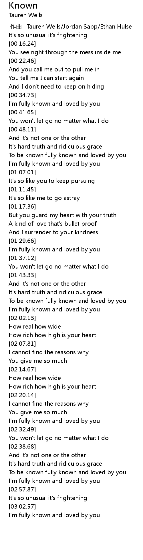 | [00:52.52] | It' s hard truth and ridiculous grace |