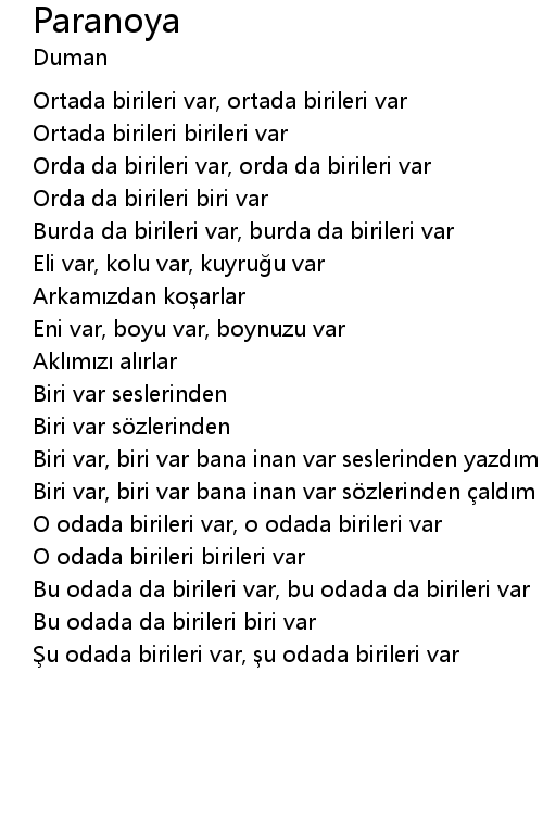| Biri var, biri var bana inan var seslerinden yazdım şarkılar | |