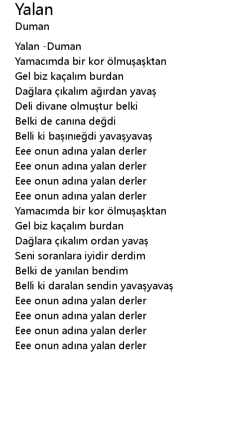 | [00:00.770] | Yalan Duman |