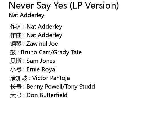 | 歌曲 | Never Say Yes (LP Version) |