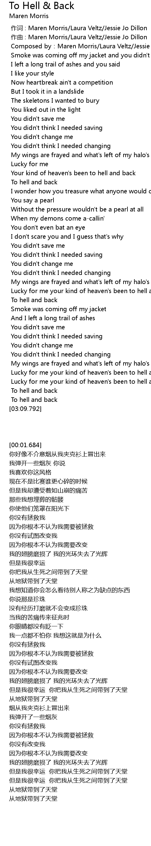 | [02:41.748] | Lucky for me your kind of heaven's been to hell and back |