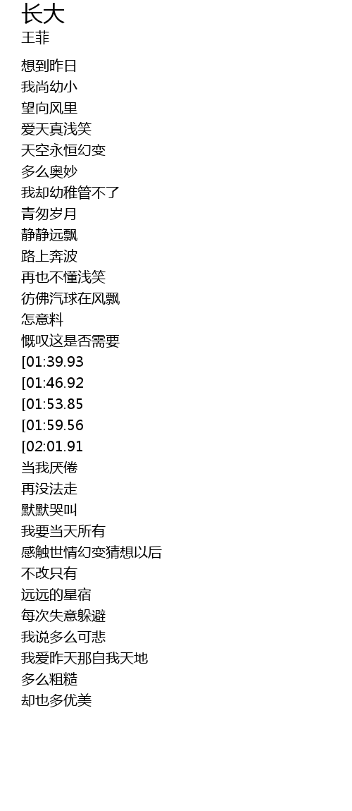 | [03:08.67][01:39.93] | 你说这叫长大 |