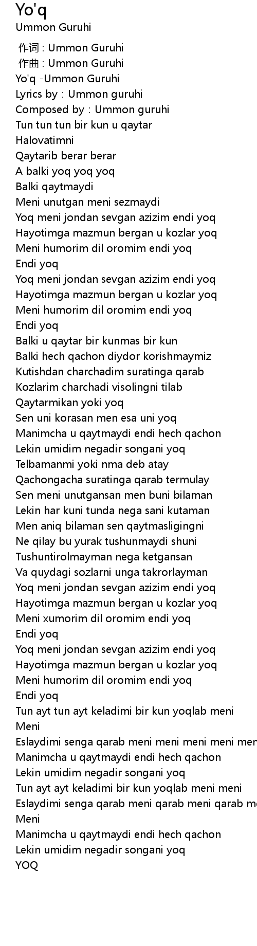 | [00:00.371] | Yo'q -Ummon Guruhi |
