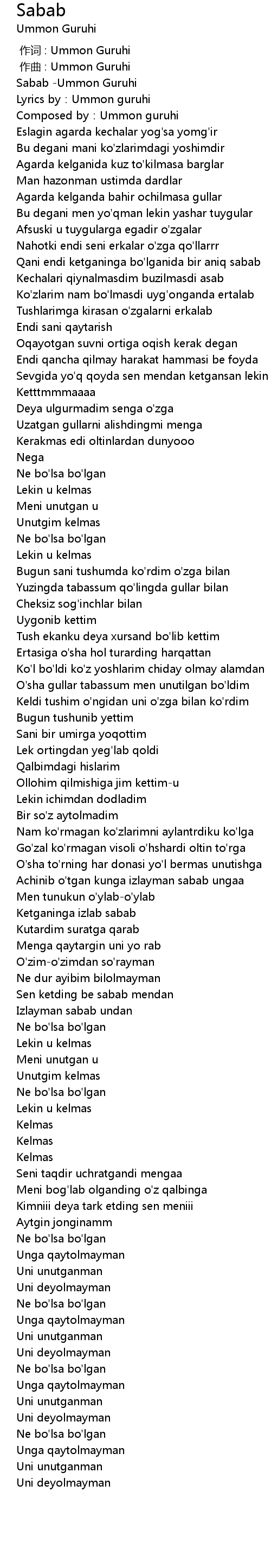 | [02:49.489] | Achinib o'tgan kunga izlayman sabab ungaa |