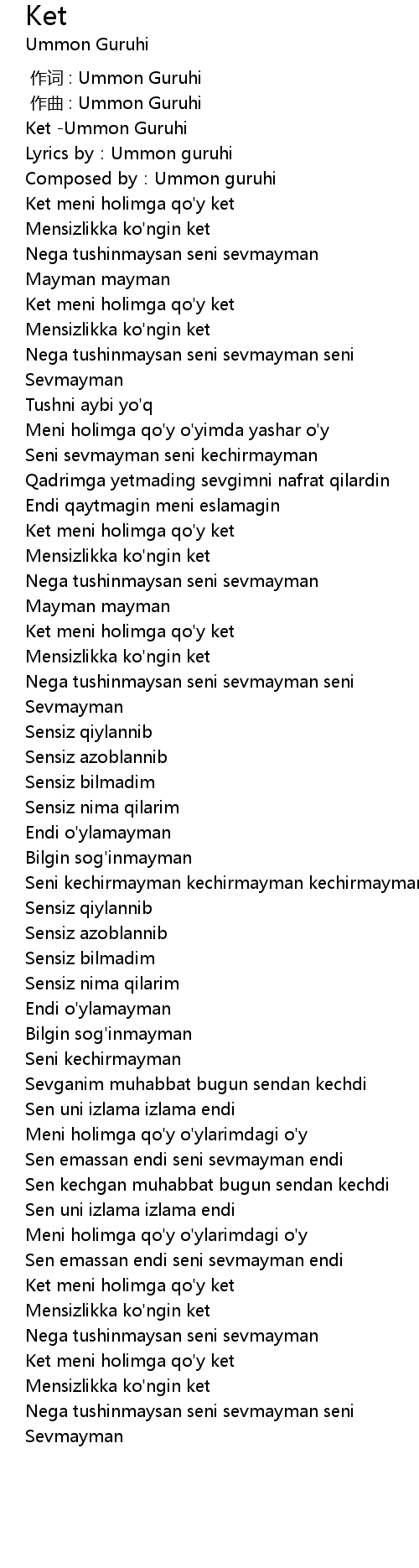 | [00:02.195] | Ket meni holimga qo'y ket |