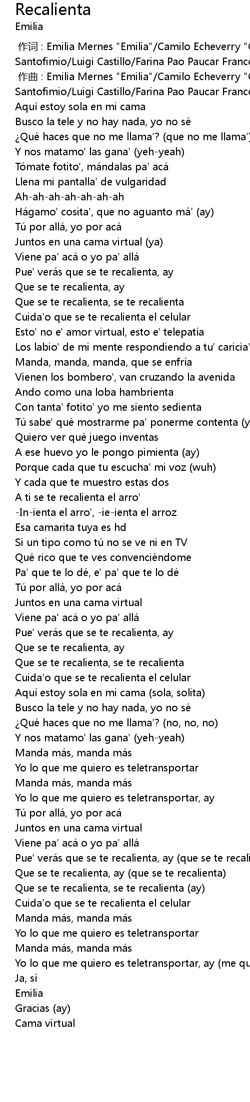 | [00:46.00] | Que se te recalienta, se te recalienta |
