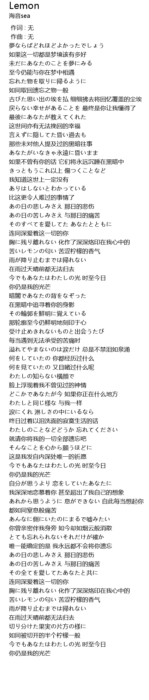 | [03:45.849] | 苦いレモンの匂い 苦涩柠檬的香气 |