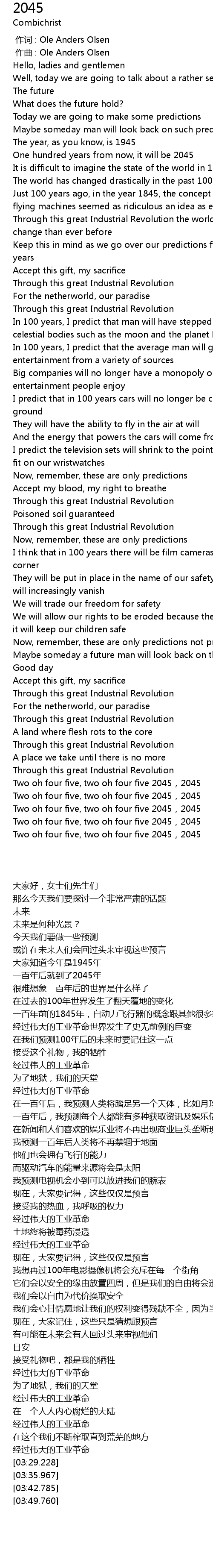 | [03:29.228] | Two oh four five, two oh four five 2045,2045 |
