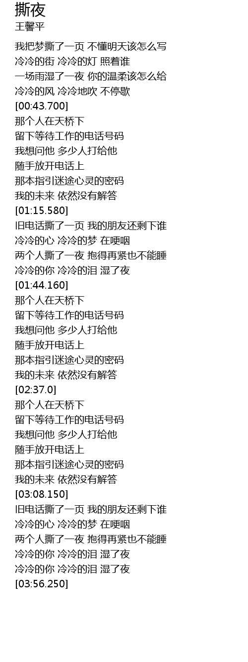 | [03:36.940] | 冷冷的你 冷冷的泪 湿了夜 |