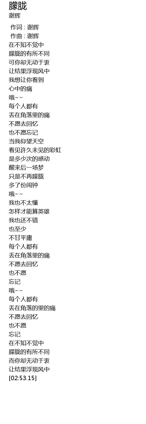| [00:00.000] | 作词 : 谢辉 |