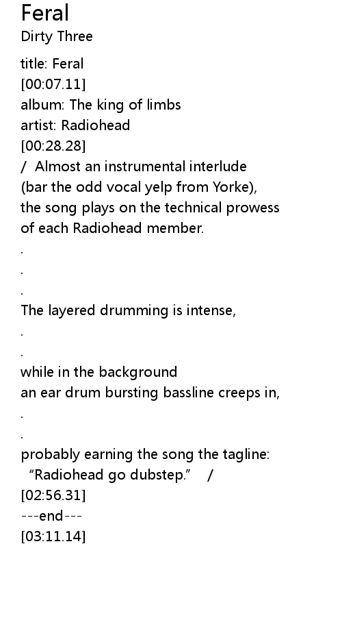 | [02:49.38] | “Radiohead go dubstep.” / |