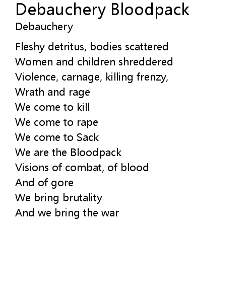 | 歌曲 | Debauchery Bloodpack |