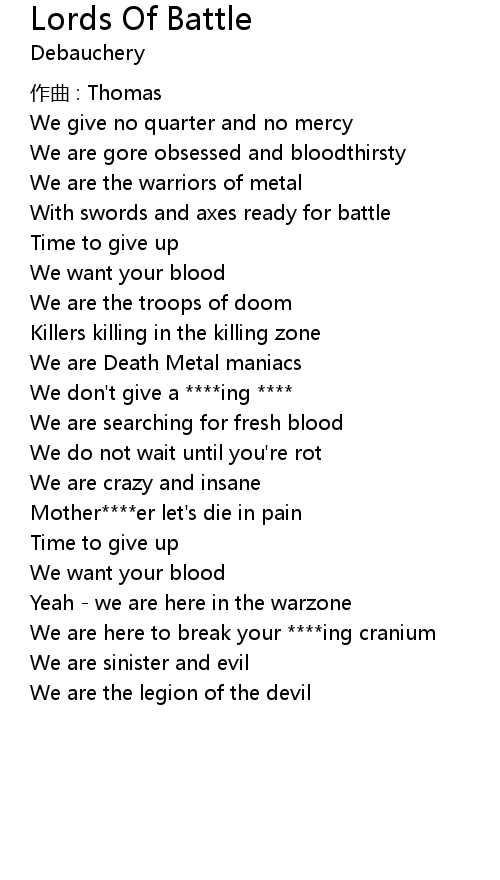 | 歌曲 | Lords Of Battle |