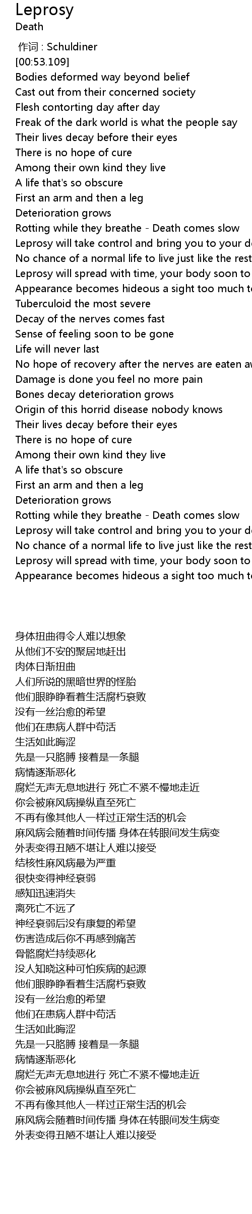 | [02:36.378] | Leprosy will spread with time, your body soon to change |