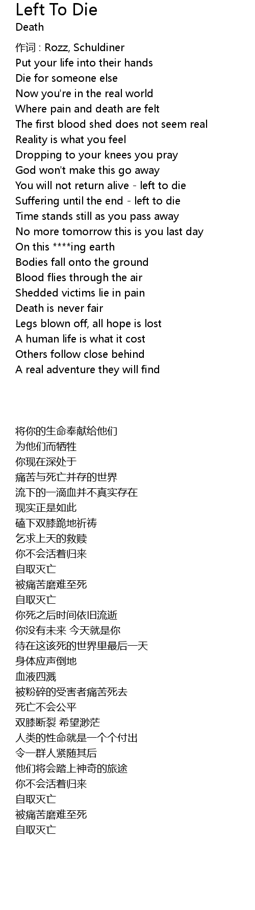 | [01:22.51] | 被痛苦磨难至死 |