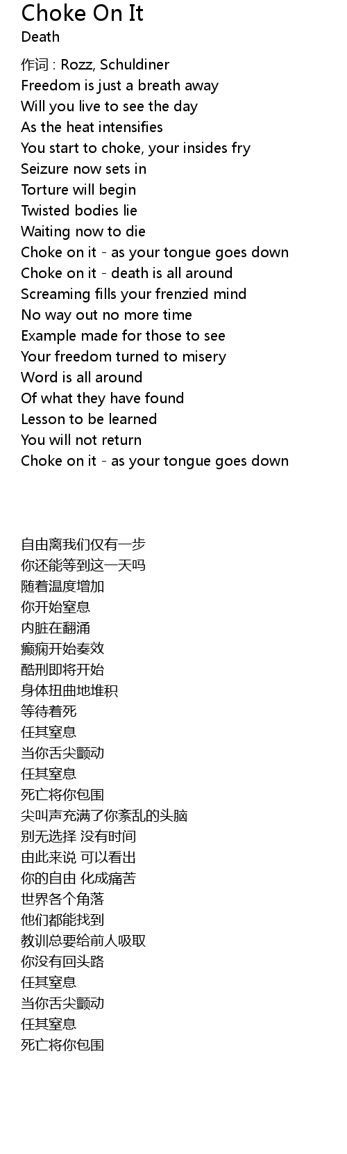 | Choke on it death is all around | |
