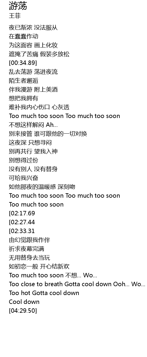| [03:32.91] | Too much too soon bù xiǎng... Wo... |