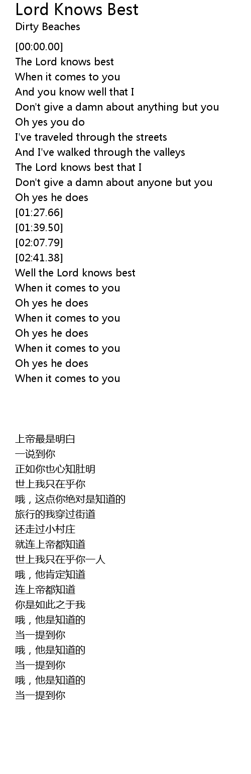 The Lord knows best that I |