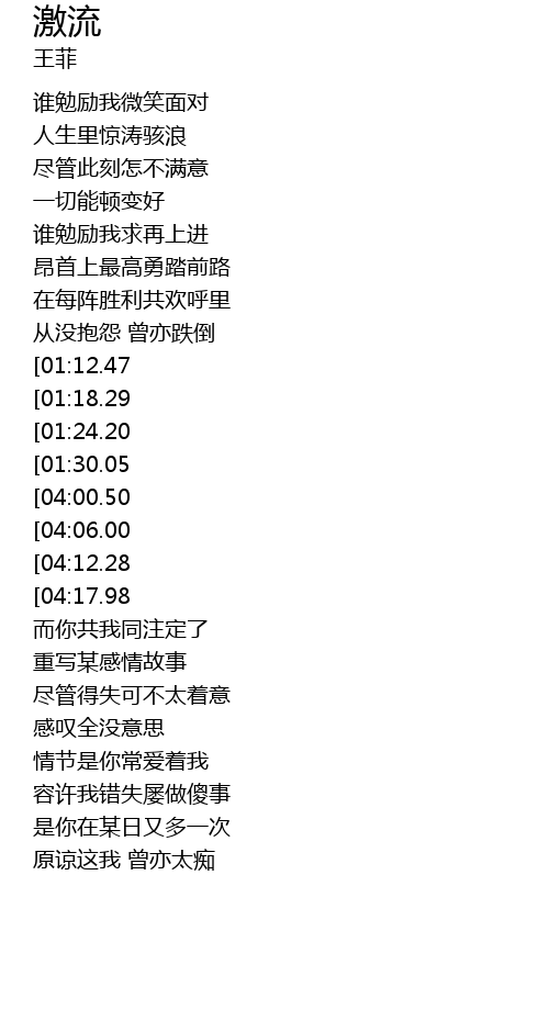 | [01:05.48] | 从没抱怨 曾亦跌倒 |