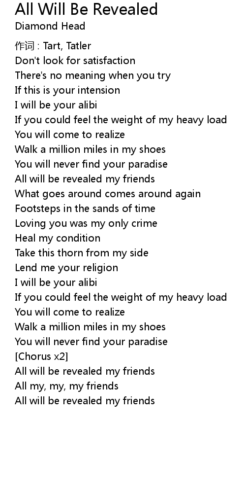 | 歌曲 | All Will Be Revealed |
