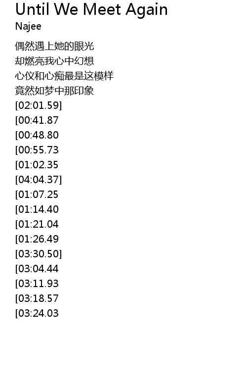 | [03:54.88][03:24.03][01:54.20] | Until we meet again |
