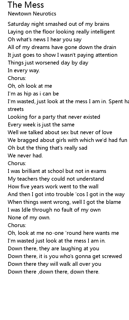 I'm wasted just look at the mess I am in. |