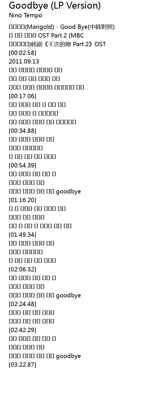 | [00:00.00] | 매리골드(Marigold) - Good Bye(中韩對照) |