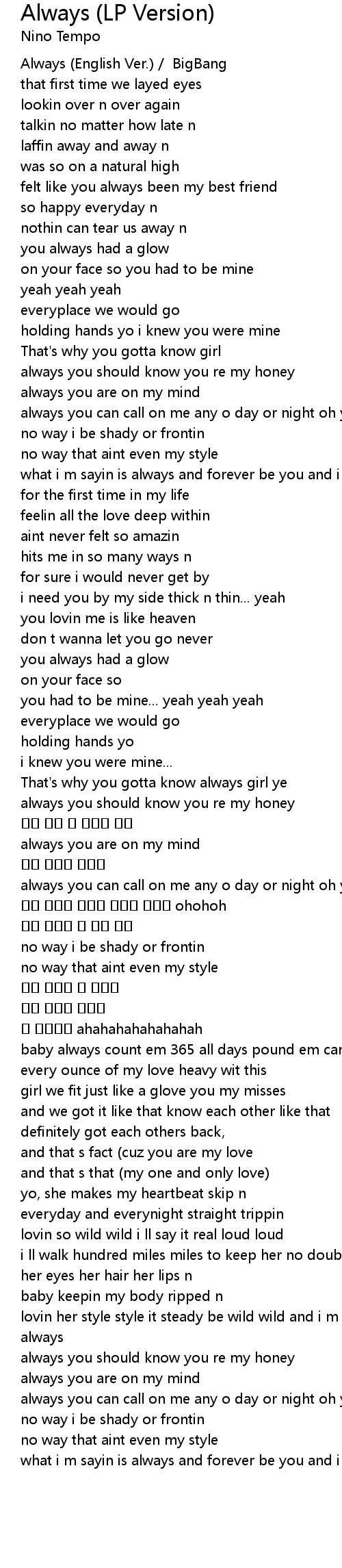 | [00:00.20] | Always (English Ver.) / BigBang |
