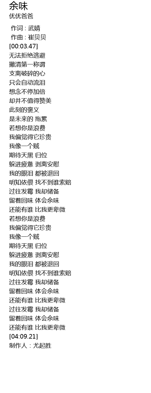 | [03:31.03] | liú zhe huí wèi tǐ huì yú wèi |