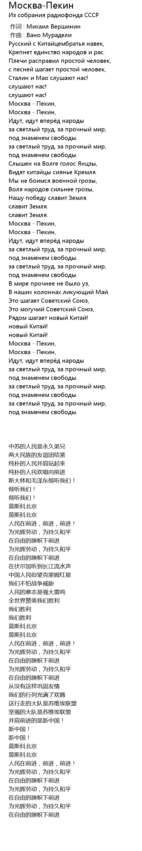 | [01:01.244] | Видят китайцы сиянье Кремля. |