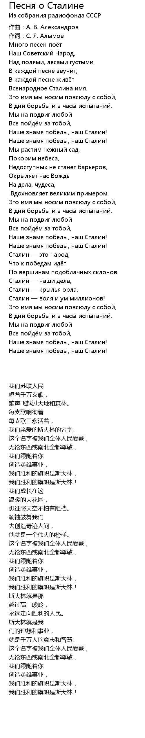 | 歌曲 | Песня о Сталине |