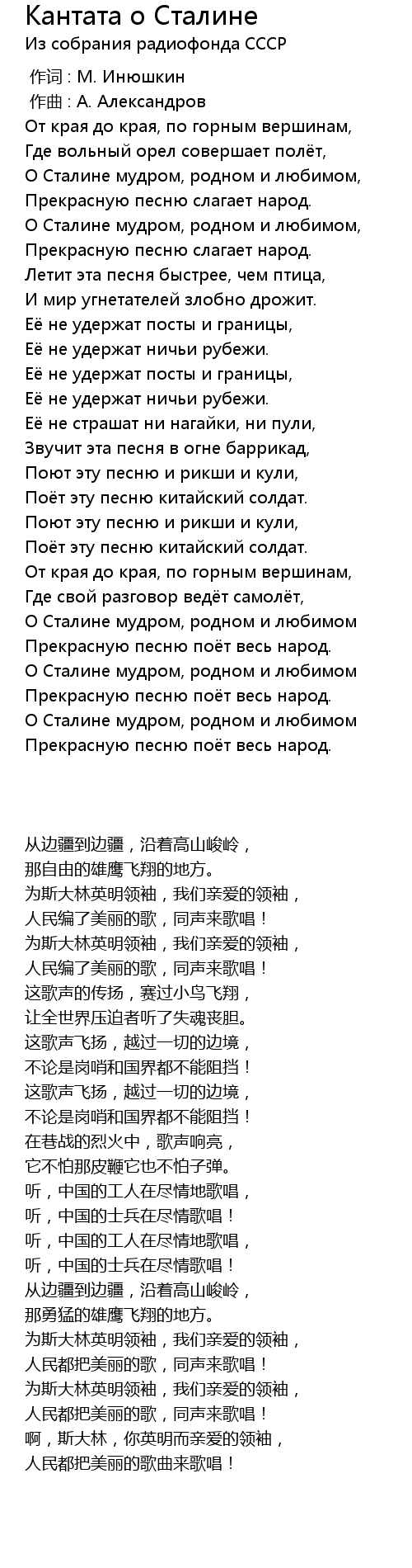| [04:46.75] | О Сталине мудром, родном и любимом |