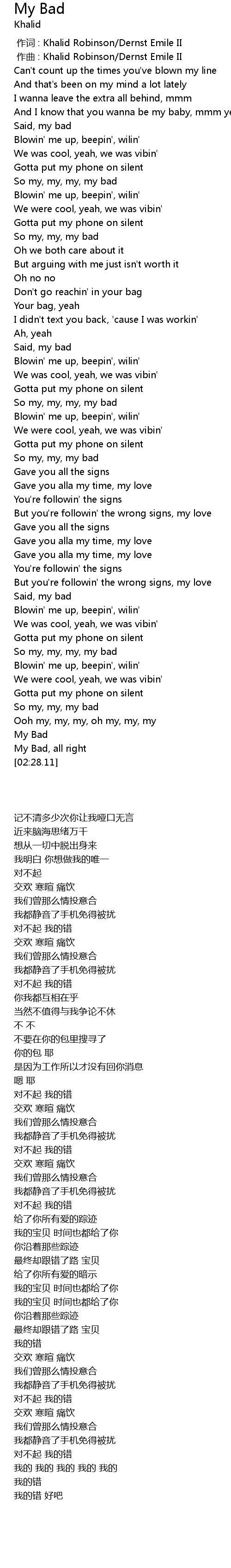 | [00:00.000] | 作词 : Khalid Robinson/Dernst Emile II |