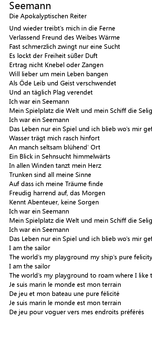| Das Leben nur ein Spiel und ich blieb wo' s mir gefiel | |