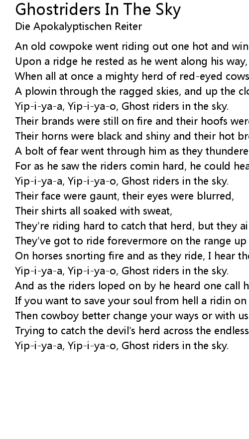 | Yipiyaa, Yipiyao, Ghost riders in the sky. |