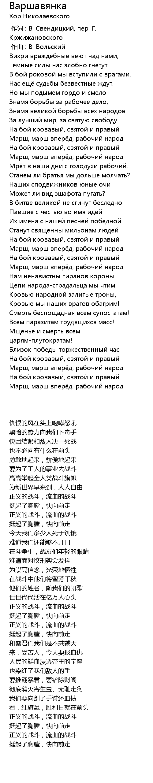 | 歌曲 | Варшавянка |