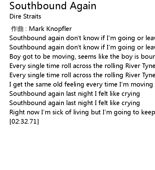 | [00:21.45] | Southbound again don't know if I'm going or leaving home |