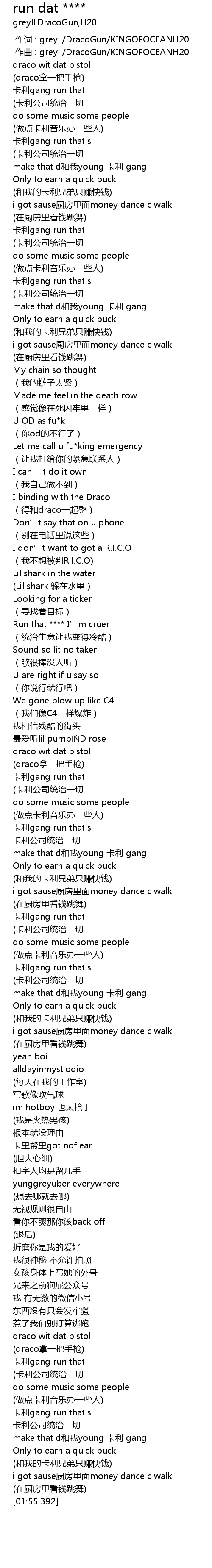 | [00:01.000] | zuò qǔ : greyll DracoGun KINGOFOCEANH20 |
