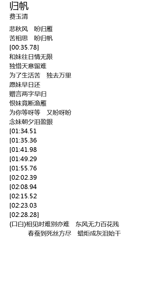 | [03:01.98][01:41.98] | 含愁问妹那日还 |