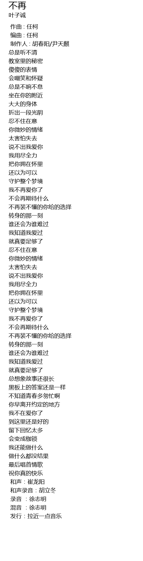 | [01:15.136] | 我不再爱你了 |