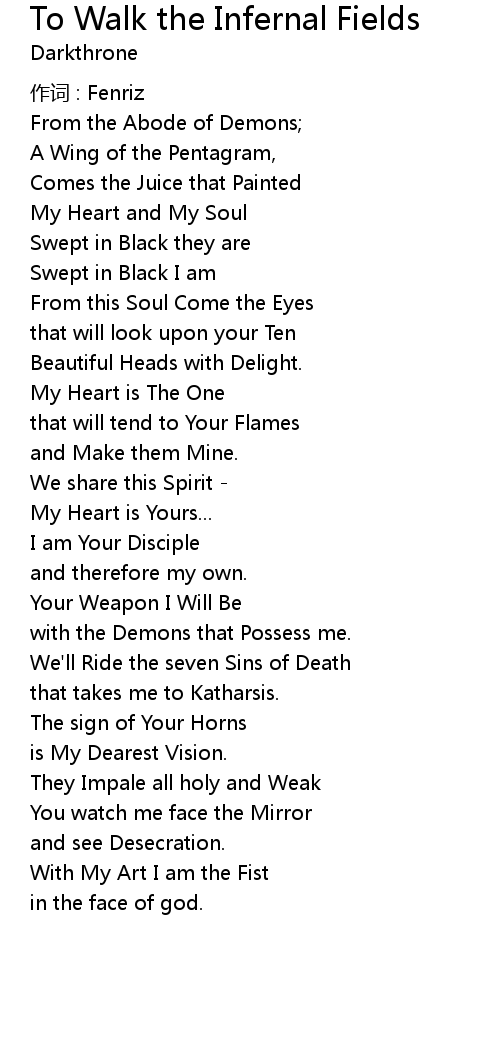 | 歌曲 | To Walk the Infernal Fields |