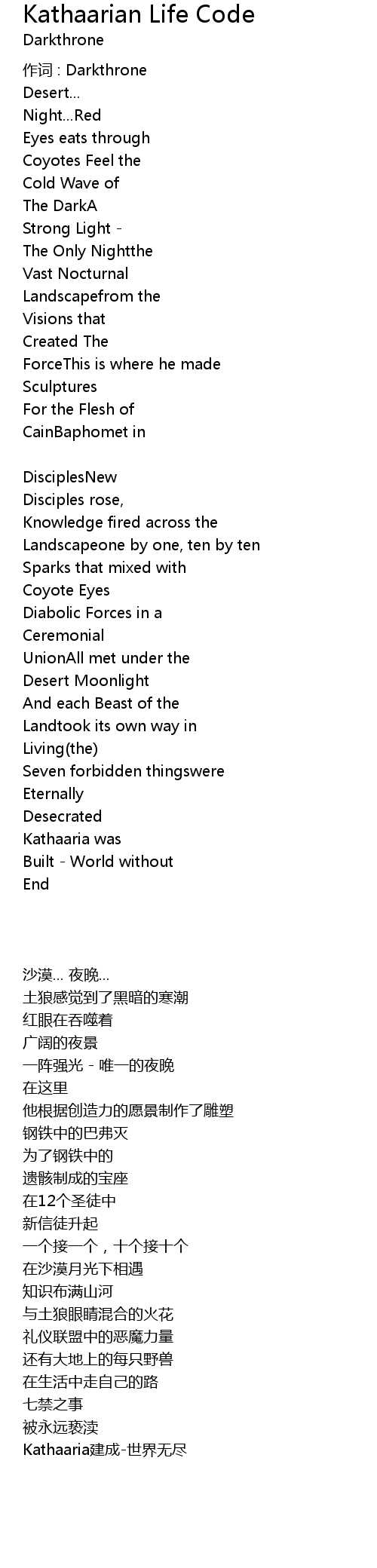 | 作词 : Darkthrone | |