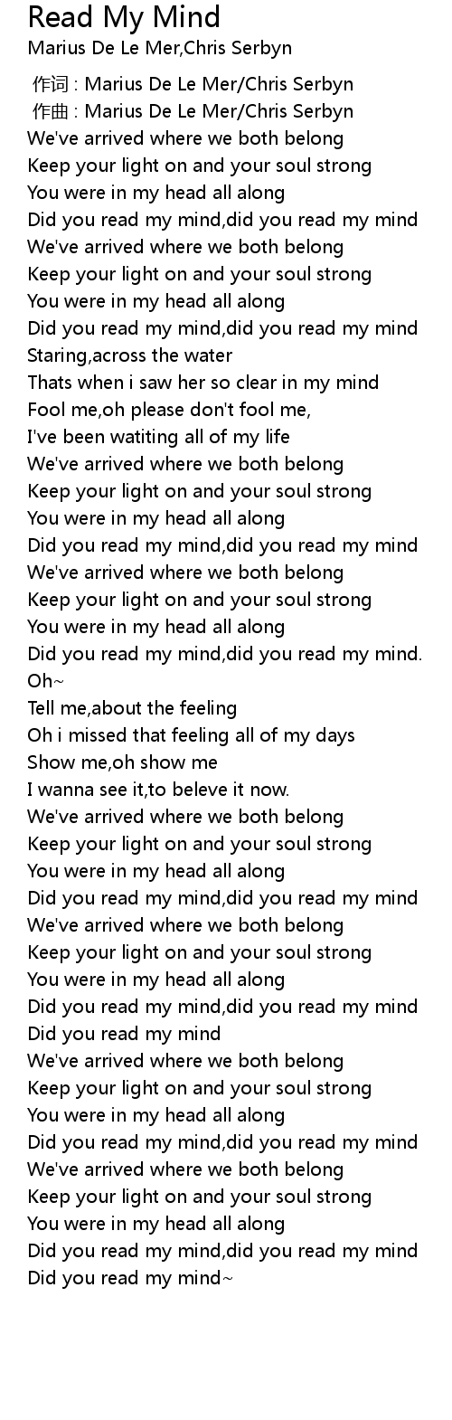| [02:53.00] | Did you read my mind, did you read my mind |