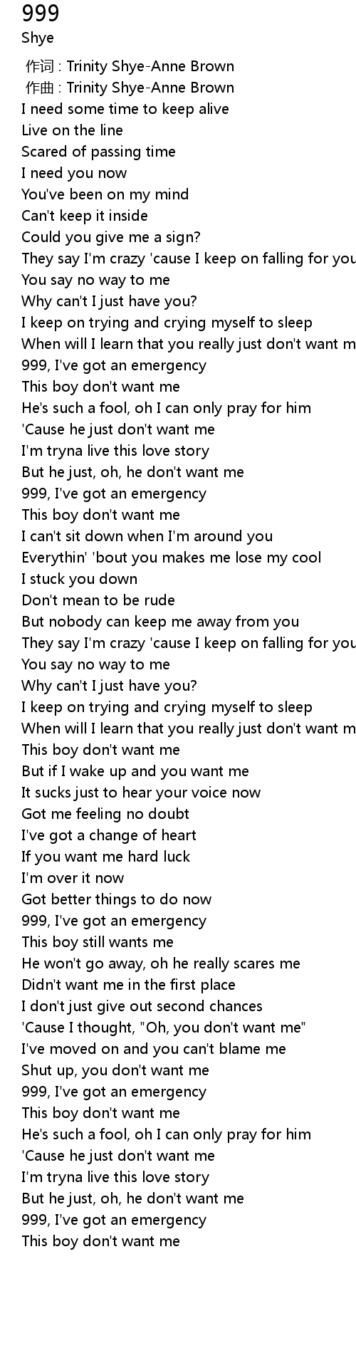 | [00:00.000] | 作词 : Trinity Shye-Anne Brown |