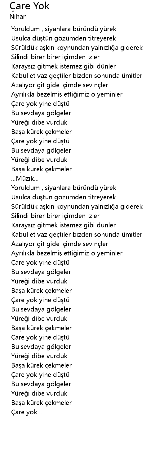 | [01:45.563] | Yoruldum , siyahlara bü rü ndü yü rek |