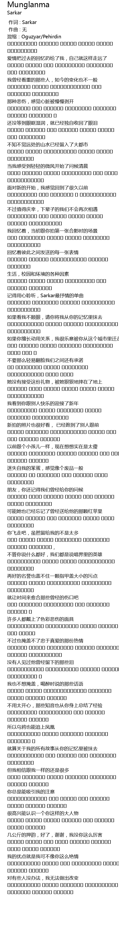 | [00:00.000] | 作词 : Sarkar |