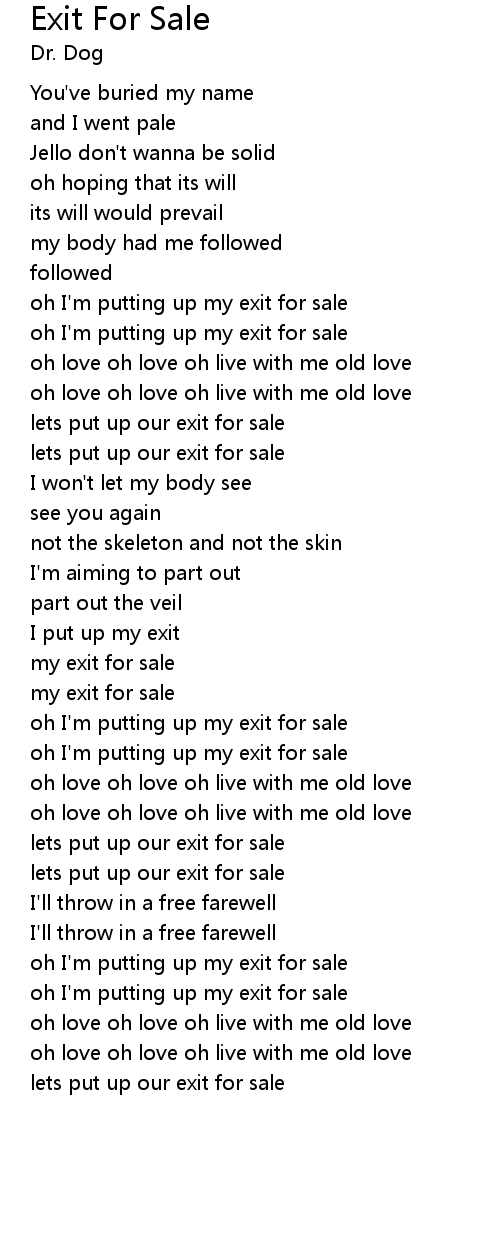 oh I'm putting up my exit for sale |